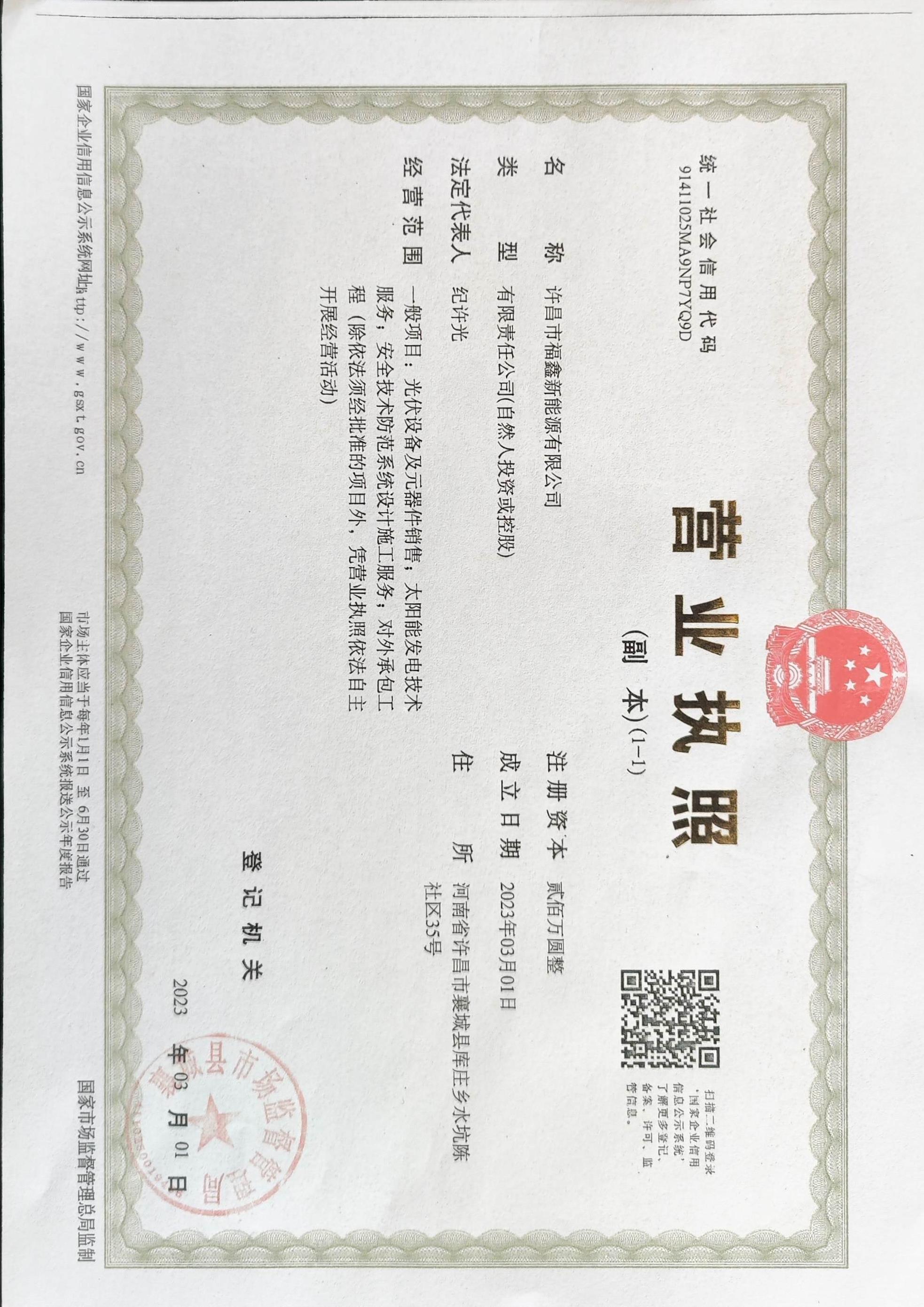 福鑫新能源有限公司于2023年正式成为创维光伏(光伏发电)在许昌襄县地区总经销。并同时在商丘市永城市,夏邑县共同合作开发光伏发电项目。